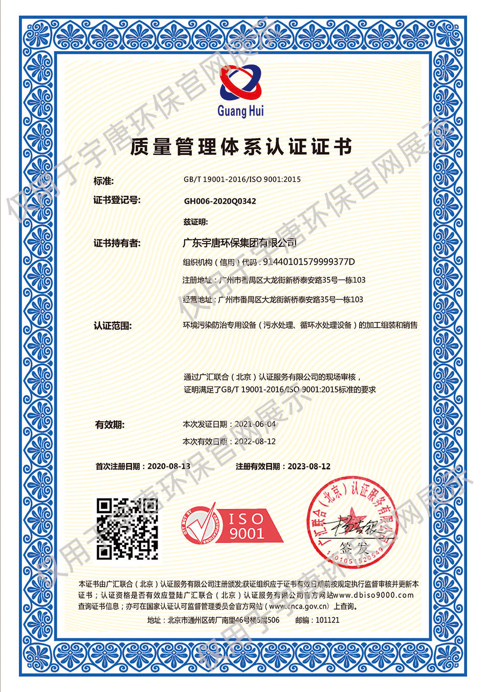 質(zhì)量管理體系認(rèn)證證書ISO9001